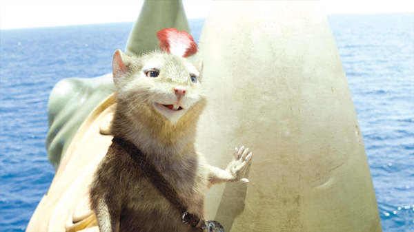 Of Mice and Dragons "We had designed and did the concept development for Reepicheep at MPC, beginning on 'Prince Caspian' and going through a series of ideas during pre-production on his look, colouring, costume and the props he uses," said Greg Fisher, Head of Animation at MPC. "For 'Dawn Treader' we took this original design and tweaked him a little further. Having created his asset from the ground up helped us understand how to get more from him this time. "We really wanted to make sure that his moves and swashbuckling adventures with his sword had a basis in real swordplay. So it was critical that he hold himself and move correctly. In early pre-production, the whole animation team attended fencing classes to understand how to carry a sword and use it properly. While It is something that you can be told or watch how to do, there is no substitute for actually doing it. The animators could feel the weight of the sword and understand the body posture and weight shifts needed to create a move effectively. It turned out to be invaluable experience and we had fun doing it, too." Mouse Maintenance Greg said, "How much of a mouse against how human he should feel was quantified shot by shot depending on what he was doing. Pure acting shots were more on the human side, those with locomotion tended more towards the mouse. The trickier shots had a bit of both, where we aimed to giving him the twitchy, nervous, high-frequency motion attributed to a mouse, but keeping him strong and bold in keeping with Reepicheep's character. Second Chance "It had proved difficult on 'Prince Caspian' to reach a good, human type of expression when he always had to be slightly on profile while speaking to someone in directly in front of him. He could become more expressive and emotive, as this movie demanded of him. To age him we 'tubbied' him up very slightly around the waist region to look just a little portly, and a touch of grey was added on the whiskers and in the groom of his fur." MPC's work on Reepicheep has been nominated in the 2011 VES Awards for Outstanding Animated Character in a Live Action Feature. Back and Forth "That being said, what we wanted to achieve with the Dragon rig was something that would allow the animators to focus solely on the performance and not have to constantly fight against an overly complex rig to get their vision on screen. The only way to achieve this is with a healthy back and forth relationship between the rigging and animation departments." When the riggers handed over the initial rig to the animators in pre-production, they tested it out as thoroughly as possible. Then the rigger would address the notes that came from the tests and they would repeat the process a few times. One of the trickiest parts to get right was the neck, both to rig and to animate. Exploring the Rig The animation was not divided up into character specific teams. Instead, they had three teams, each assigned specific sequences. Within the sequence, they split the shots into beats that were assigned to the animators. However, as the show went on, certain animators developed a genuine familiarity with the Dragon character and were often assigned his more complex shots, which made it much easier to keep his character consistent. Character Arc "At the start of each sequence, the entire team would get briefed on the intention of the sequence, the character arc that we were hitting throughout the sequence and the character's inner thoughts, especially important with a mute character. Then, on a shot specific level, the animators would often film themselves acting out the performance and use that as reference for their characters. This is the best way to add subtlety to your work." |