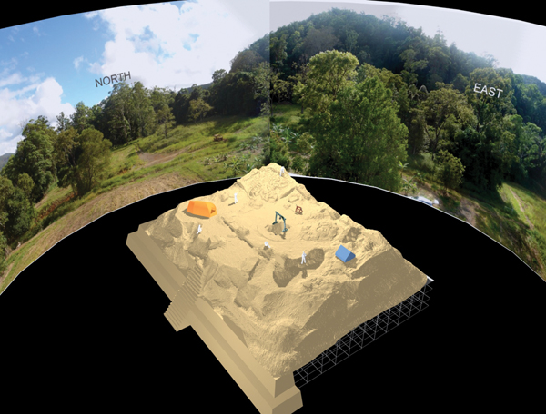 Slicing the Model To be certain our drawings were useful for construction, I also consulted with Construction Manager Sean Ahern, also a boat builder by trade. At his request, I sliced through the model using Section Plane in 3DS Max to create cross sections at every 600mm in X, Y, and Z planes. I imported these into AutoCAD to create .pdf working drawings for the Construction Dept. For the hull, prow and tail alone, there were 89 tech drawings of just the sections. The project relocated to the Warner Studios on the Gold Coast, where location scouting took place to find an exterior place to put the ship. There were several options for the ship's orientation and height at all sites. I would match POVs of the location photos with a virtual camera in 3DS Max, render the ship and superimpose this render against the location photo to help everyone visualise the ship in its proposed position.