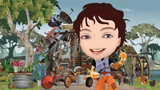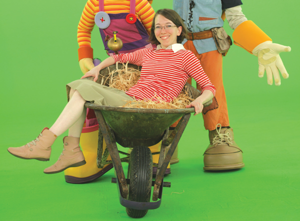 When they were ready to start producing ‘dirtgirlworld’ in 2008, series creators Cate McQuillen and Hewey Eustace were keen to design the main character Dirtgirl to be able to reach out and engage a young audience aged four to seven well enough to deliver the show’s environmental message. After seeing Hackett Films’ work on a music video for The Dissociatives using a composited, photomontage style mixing live action with animation, they thought the approach would be worth developing for ‘dirtgirlworld’. Yanick Character Building Animation director Jean Camden described the production workflow and pipeline. “Dirtgirl and her companion Scrapboy are each composed of a live action body with live action eyes and mouth composited onto a large illustrated, animated head. Building the characters involves a live action shoot on green screen. Both Dirtgirl's and Scrapboy's bodies are shot separately from their heads. The head shoots have to be done one character at a time with the actor strapped into a chair to minimise movement. Then for the body shoot, also against green screen, Dirtgirl and Scrapboy both wear oversized boots and gloves to keep the characters' proportions looking cartoony, and balance with the large heads.” The main reason for shooting the heads and bodies separately is the need to keep the eyes and mouth at a high enough resolution to enlarge and composite effectively into the heads. Therefore, the facial performances had to be shot as extreme close ups. Also, during the head shoots, the bodies had to be kept still and facing forward. “It was important to prevent the actors from moving and bobbing their heads around too much, and to avoid turning their heads too far around because of the very wide set of their eyes in the animated heads,” said Jean. “Their eyes simply slip off their faces if they exceed a three-quarter turn.” Heads and Bodies Once the performances are complete and the backgrounds are designed, compositing can begin. All compositing is performed in After Effects as well as tracking heads onto the bodies. “A principle concern has been the eyelines of the actors. Even when all four characters are to be in the one shot, each facial shoot still has to be done separately,” Jean explained. “We had no reference points for the actors to use until we devised charts based on the storyboards to place in front of the actor. These show numbers representing the other characters in relative positions corresponding to where they will appear in the finished scene. As the cast memorise their lines, they also memorise which number they should look toward at certain moments in the script.” Photomontage “The majority of elements were created using Photoshop with a combination of photographic textures and vector illustration, always simplifying the form of the object. These 2D elements were then laid out in After Effects in 3D space, where most were assigned to always point at the camera, continuing to appear as though they were 3D and not turning to pieces of paper when the camera panned through a scene. Designing many elements with a cylindrical shape helped this illusion. Textures and Techniques Dirtgirl’s tractor was represented on set by a green prop. Any parts that she needed to handle such as the steering wheel and gear levers was built and painted, but everything else could be composited in as a 3D element. The same is true of all props that actors interact with. They had to be built, painted ready to remain in the shots, scaled up to match the characters’ oversized heads and hands. During storyboarding they tried to limit the need to hold objects. All such props needed to be photographed on green screen at different angles, to composite into neighbouring shots for continuity. At the time they started shooting, a portion of the environment still had to be built to accommodate the new episodes. But by now, having completed the first series, they have gathered a large number of assets and references for Dirtgirl’s world. Also, keeping the same actors has been important because the characters' faces would change completely with different actors. The animators are based at Spin FX in Canada with their own director, Hana Kukal, while Jean was working in Sydney with the live action team, carrying out the Photoshop work, rigging, building and setting up all characters and props ready to animate. They also laid out all the assets in After Effects, ready to go. Jean and Cate oversaw the animators’ work remotely by communicating with Hana via Cinesync software, in which all parties can watch the same QuickTime together and draw on top of it to share notes and ideas. |