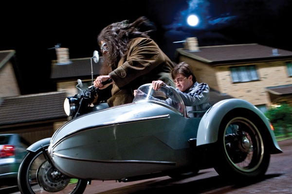 At Godric’s Hollow, the village where Harry’s parents are buried, the team extended the street beyond the actors in a single shot that required considerable effort, mainly due to the edit. The buildings in the extension had to match the practical set perfectly because this shot was cut directly next to a shot with the physical buildings shown directly behind the actors, but no clean plates or reference stills were available.
