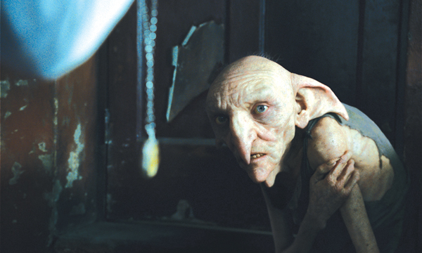 Framestore recreated Dobby the house-elf, one of Harry Potter’s oldest allies and a key figure in the earlier films also, and Kreacher, another house-elf. Dobby’s main performance in this movie occurs when he comes to rescue the three friends from the Death Eaters at Malfoy Manor. Although he is called a ‘slave’, Dobby stands up and distinguishes himself by claiming he is a free elf, come to save Harry Potter and his friends, an astonishing thing to say considering the dangerous circumstances. As they escape via a disapparation, Bellatrix throws her knife and strikes Dobby. When the group re-gathers on a desolate beach, Harry rushes to him but discovers he has been mortally wounded, and the heroic elf dies in his arms.
