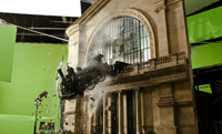 Historic Crash Matthew started planning his approach at once. “Our main challenge was to achieve this shot to look like a real train crash – with a real train and real station, and action that scales out correctly. So I decided to use the largest scale I thought would work within the confines of the stage and the other practical factors for the shoot, while meeting the director’s requirements for the story, and chose a scale of 1:4 .” This scale, resulting in a quarter-sized station and train, produced quite a large ‘miniature’. The station was about 20ft high and 25ft wide, and the train itself was 18ft long. In the process of building it, the crew had to engineer the materials, the mechanical effects and how it would perform and fall back to the ground - exactly as it did in the reference photo. In fact, this last point was probably the team’s greatest challenge. “This train has to behave exactly as the train behaved in 1895. Obviously, we had no running footage of the event to show us how the action actually unfolded. Therefore, using the dimensions of the train and our understanding of physics, we had to simulate the result,” Matthew said. |
