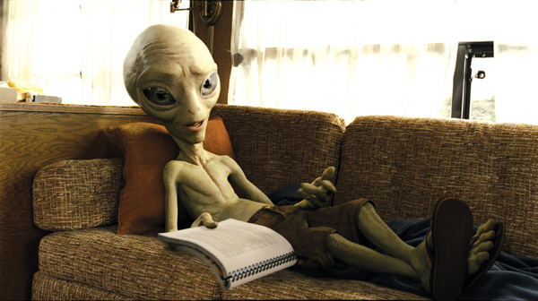| Even the production - director Greg Mottola and producers Nira Park and Eric Fellner – first described Paul in terms of what they did NOT want him to be – not cartoony, exotic or extreme. Animation Supervisor Anders Beer and VFX Supervisor Jody Johnson began working and carrying out tests at Double Negative on Paul’s character as far back as 2007. He needed to be a familiar, grounded, photorealistic ‘grey’ alien of a type the audience would recognize from generations of science fiction movies and video games, with a big head, large dark eyes and spindly little body.