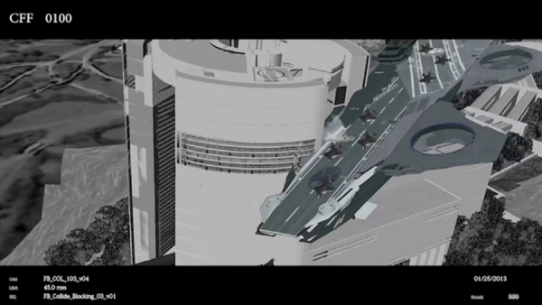 Previs ToolsProof’s team used Maya for animation and rendering, Adobe Premiere Pro for editing and Blender for simulations. They deliver QuickTime movies to the production, and when preparing techvis they print out hardcopy diagrams for the production to use on set. All members of the production receive the same QuickTimes except the vendors, who would also receive the scene files the movies were derived from. |