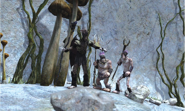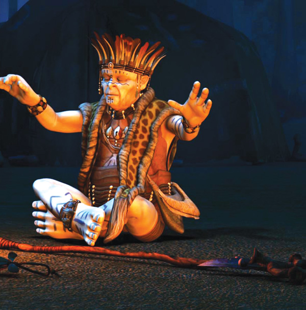 "We had our own facial rig built in Maya. Much thought went into the eye textures and natural skin wrinkles to suit the character type," said Elise. "Some parts of the eyes were made separately to give animators as much control as possible to express emotions. Accounting for the dangling clothing added considerably to the complexity. Quag Naga and Shamani were among the most complex with their overlapping armour and clothing, which always has to be calculated during animation and moved out of the way."