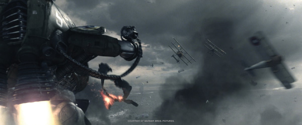 “We designed WWI planes, the zeppelins, environments such as the German headquarters and gunners nest and all smaller assets,” said Thilo Ewers, Art Director and Environment Supervisor at Pixomondo. “It all had to have a steampunk look. The preproduction was an ongoing process. Intensive look development took nearly three months before we refined the existing concepts with specific designs for our sequence such as logos or decals. Previs was ongoing as well. We spent an initial two months on previs and postvis, but did more whenever new shots were created or added.”