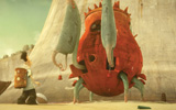 Leo worked in a small studio above a laundry in Melbourne, near Shaun who met with him every week or so to monitor progress. Leo would make an OpenGL capture of the performances he’d been working on as a low resolution test render, and the whole animation could be reviewed from this. Leo was using Softimage XSI for the animation, which he finds has especially good 3D animation tools for editing and adjusting performance. Also, because a lot of the development had been done through Passion Pictures UK where the team was also using XSI, it was convenient. Leo and Tom Bryant worked well together, coordinating their individual strengths. Leo has filmmaking skills from camera set-ups to character animation – shot construction, composition, framing, previs, and preliminary through to final animation. Tom’s strengths are modelling, lighting and rendering. Their skill sets were therefore a good match. Where Tom left off, Leo picked up.