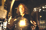 Black Slime The sorcerer Horvath places the Grimhold on top of a fountain filled with CG water, stops the fountain and magically cracks the container open with his cane. Black slime pours out, created as a fluid simulation by One of Us. It rises and grows, with CG fluids composited over the surface to give it the look of an egg sack holding all things evil writhing under the surface. When it finally bursts open and falls, we see Veronica standing there, possessed by Morgana. A new sequence then begins as she begins casting fire over the city from the fountain. Double Negative focused on creating this fiery energy that travels through the streets. A helicopter unit took a collection of aerial views of Manhattan, which the team would composite the fire into, while on the ground, a camera car captured more shots, moving up Broadway and down side streets with a camera strapped to the front and a 20K light to create some interactive lighting as it drove past. Fiery Energy “It was a creative challenge more than anything else. Technically it was all within reach. We needed to establish the look of fiery lines and symbols in the sky that were readable in wide aerial shots as well as close ups where it bounced off satellite dishes. And because it was fiery energy rather than just fire, we wanted to avoid making it look explicitly like fire to help establish the story point that it was something magical that normal eyes wouldn't see – after all, this was the fire that was going to form the magic Pentagon over Manhattan. “We ended up with a fireworks look, very hot, energetic and unstable. Senior FX TD Tim Riley developed a Houdini set up based on particles and sheets of geometry, with a leading fiery ‘head’ made out of combusting energy. Render times were relatively low, making it possible to quickly get a selection of elements into compositing and allow the look to develop further in the comp. This enabled the look of the fiery energy to evolve in the comp without the underlying setup needing to change, and without the need to re-simulate complex fluid dynamics.” They relied again on Squirt, their fire and fluid simulation software. Sequence supervisor Gavin Graham gave a presentation on Squirt at SIGGRAPH this year, just as this film was being released. Spectral Morgana “Nevertheless, she still had to be recognizable as the same character, played by Alice Krige, as earlier in the story with facial detail you could read and defined hands that you could follow. We shot Alice on set, meaning we could base our ‘spectral Morgana’ on complete plates of her real performance, not on character animation. But this also demanded very accurate body tracking, including a cloth rig track to accommodate her long trailing black dress and sleeves, and facial animation tracking, requiring a facial rig. This gave us a fully rigged digital double of Alice doing exactly what the live footage was doing but allowing us to turn her into particles.” In the early concept drawings, Morgana appeared as a hideous witch. But the director and producer had liked Alice Krige’s performance so much that they wanted the team to both give her an otherworldly quality to emphasise her magical powers, while maintaining the readability of her performance. Particle Management But using particles alone didn’t give the character enough complexity and density. When the particles separated, you could see though Morgana. Elements had to be added to the interior. First, a shining, pulsing core was placed in her centre by raytracing against a fluid simulation. Then a swarm of writhing fishlike creatures was created and also set up using the procedural framework of Houdini, to be able to apply it across a large number of shots. 2D Sequence Co-Supervisor Ian Simpson was responsible for putting these various components together, using Shake to composite her into the scene. Interactive LEDs on Morgana’s hands in some of the shots, representing the plasma she was shooting, complicated the work. Depending on the timing of the plasma balls, he had to reconstruct a clean plate through the CG to prevent the blue plasma from interfering with her form. Getting the right balance between swirling and tighter layers of particles, especially on the face, was still a problem, requiring many masks, texture and lighting passes, and she also needed to be scaled in 3D in many shots. Real Physics “These worked out well. We had a ‘cool’ toned light for the fire balls and a hotter blue light for the plasma balls introduced later. Actually, the light on this set was mostly real, which is essential to properly integrating the CG elements, and only needed a little enhancing later. We also discussed working with the fireballs with the actors to make sure the performance and the effects were aiming for the same looks, and because the director continued getting new ideas on set, this sequence became more of a post-vis exercise than previs.” Balthazar’s magical demonstrations are perhaps at their most potent when he scorches a huge fiery circle into the stone floor of the laboratory. On set, the shoot required one of the biggest special effects rigs of the show, using gas plumbing under the floor to form the magic symbols. These could produce fire of any colour and green was chosen. Balthazar stood at the centre, raised his arms and produced a huge rush of flames. Then the scene was shot again without Nick. “It looked quite effective, but needed some embellishment – the rig was smoky and although the flames were bright enough to blow out the frame, they weren’t really tall enough. The team eventually decided to replace the flames with CG but what really helped us was having the interactive lighting already baked into the plates. It was virtually all there for us. “Looking at reference material of oxy-acetylene welding was useful because these flames are hot, flickering, super-bright, and blow out the frame with lens flares and re