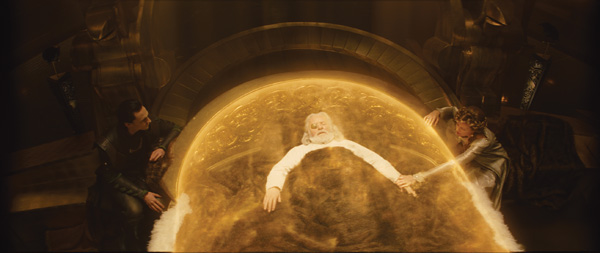 Fuel VFX team of 25 artists also extended their talent to Odin’s chamber, where the work focussed on a story point that Odin needs to retreat occasionally and recharge himself, falling into a sleep beneath a special light-ray or field of energy. “In the original concept frames, it appears as a large light beam shining down, but the production wasn’t enthused by this presentation. It simply looked like a gradient and not especially interesting or compelling,” Paul said.