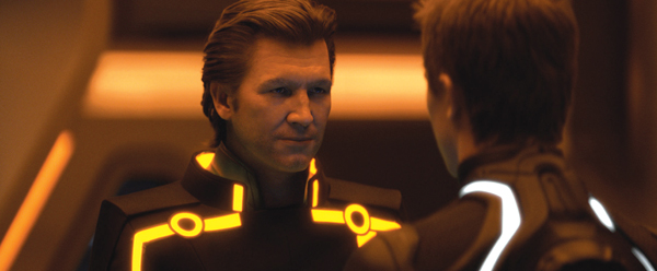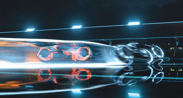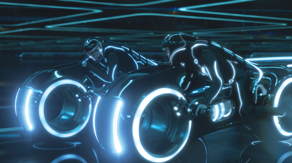 The shoot took place from March to August 2009 in Vancouver, where VFX Supervisor Eric Barba from Digital Domain worked on-set with a small integration team. ‘TRON: Legacy’ was Paul’s first stereo project, and one of the first movies made on the Pace rig after ‘Avatar’. The stereo work felt new to everyone at Digital Domain, where they have worked on dimensionalised projects before TRON but not one that was shot in stereo. Camera Testing This film was significant for Digital Domain because they were working with the production and director from the very outset, carrying out previsualistion and running the Art Department in-house. “Digital Domain has never had that level of access to a production before,” said Paul. “We have always worked as vendor under an on-set VFX Supervisor hired by the production. But on this project, our VFX supervisor Eric Barba took that role, giving us much more contact, and everyone found working this way very enjoyable.” The Digital Domain team completed 17 of the film’s sequences including major set pieces for the Disc Game, Light Bike Battle, Light Jet Battle and the portal sequence at the film’s climax. They also set up the looks on all sequences outsourced to other vendors, where the teams would develop them further following the rules and guidelines for the show, which were specific and precise. Consistency was crucial for this film and because about half the film’s shots had to be outsourced, maintaining control was a major task. Follow Focus To use the follow focus system, they would input their camera data, the CG from two different elements and, for example, information from the animation about where that camera should be. From there, they could work out from the plate how to correctly focus their work in stereo space, which helped give the CG an integrated, realistic look. They handed out plug-ins to do all flare work as well, because the film features a highly stylised flare with scan lines, controlled by angles of light. Such tools were developed on the actual shots, and by the time they sent them out, they were complete pieces of software, fairly intuitive to use. For example, to add a flare to a shot, the plug-in would use the location of the other lights in the shot to produce the appropriate ‘TRON flare’. Another tool helped produce the correct glow lines on each character’s suit, reflecting the particular colour palette associated with his identity. These lines often had to be enhanced to look brighter and show the correct colour and flicker frequency. “For some things like pulling the mattes to add the glows, there wasn’t a prescribed procedure,” Paul explained. “Sometimes the glow could be keyed, but in other instances it had to be rotoscoped. The suits sometimes failed and the light would go out, which meant it had to be rotoscoped back in.” Stereo Workflow “Throughout, we were working out what we could and couldn’t do in stereo compositing and tricks that we could get away with. We needed to gain a clearer understanding of interocular convergence and were learning how to compare one eye with the other to create a better image. Some people have more natural skill at this, while others have to learn and can get headaches at first. Double checking every shot for consistency is time consuming but critical.” The action in the TRON world was played out over a clearly defined area. When you looked out over a wide area, for example in the Light Bike sequence, you would see a view in which every asset had to be located on the correct coordinates, so that when you rotated the camera around you would still know where you were in that space and what you would see. Likewise, on the Solar Sailer’s flyover sequence, because the characters were travelling so far, they had to actually pass by places such as the stadium or the arena, all positioned in the correct locations on the grid. Compositing Challenge “The many optical effects were also a major factor in integrating live action with CG layers. All the optics created for the light bikes – moving into camera, turning, twisting, jumping – were done in the composite, slightly stylised of course but they added tremendously to the real-world feeling we achieved in the shots. “In the Light Jet sequence, flying in a massive environment with atmosphere everywhere, we were trying to composite everything together, keeping the glows and interactivity in place with bullets flying everywhere as well. We wanted to give a believable look to tracer fire and exhaust systems. All the tiny bits of optics really helped us finesse the CG to look as real as possible. Z-depth Glows The climactic Portal sequence involved hundreds of layers and passes. It had the Light Jet environment as the background, plus clouds, the sea and atmospheric passes, then the bright portal itself composed of various elements, and the bridge. Adding the CG Jeff Bridges added another full system of passes – it all added up to around 150 passes all together. “Across TRON, the environments were top lit with quite flat lighting, which was intentional of course but did make our head integration work more difficult. We had found on ‘Benjamin Button’, where we had similar work, that if the lighting was fairly moody with identifiable point sources of light, it actually made it easier to get everything working together, while the exterior shots took longer because the light was flatter without a direct source,” Paul said. “However, all of TRON was made this way – no moon, sun or time of day. This was challenging at the beginning of production when we tried to define the Light Jet world, our first sequence. Having no specific source of light made shaping the planes, textures and surfaces in the environment more difficult.” Head Integration Back at the studio, before a shot was assigned, they would assemble this HDR and break it down into its specific geometry. The team would also have s