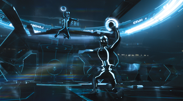 Render Economy Checkerboard Render From that stage, they would work on the left eye and fully render it in CG, and then the right eye, also fully rendered in CG. Jon watched the render process carefully. “Within the 13 minutes of material, a particular render might not come off the farm for three or four days, Jon said. “It may look great but, for some reason, have required 20 hours per frame. The right eye now needs rendering, but that render time is not really acceptable within your workflow. So you have a dilemma – do you stop and figure out where the settings could be improved and render the left eye again or, because it looks good, just retain the settings and render the right eye the same way? You can’t change the settings for the right eye only. They must be identical.” Data management to keep track of the corresponding passes and layers for the left and right eye of each shot was another substantial undertaking. They wrote special tools to manage these details, freeing up the lighters and compositors so they could concentrate on getting the left eye to look as good as possible. Only a small dedicated team – consisting basically of Jon! - had to worry about the right eye. These tools, or interfaces, allowed him to control the process with out having to open Nuke or Maya or revisit the scenes to track what was generated or being used in the composites, and match the right eye to this. Another mandated software was Nuke. In this case, Prime Focus had not been using Nuke in their pipeline. They had been a Digital Fusion studio, and found they had to change their entire 3D pipeline for TRON, involving a considerable integration process and porting several tools over to work with it. However, Nuke already has many good stereo tools that made some of their in-house tools redundant, avoiding the porting problem. Because Digital Domain supplied the different Nuke-specific ‘show-look’ tools, like the glow lines tool mentioned above, as well as stereo tools, everyone was working on common ground. Prime Focus especially liked OCULA’s tools for dealing with stereo anomalies. “A high-contrast show like TRON could have become even more demanding for us, especially regarding light polarization and reflective surfaces that potentially create stereo issues,” said Jon. Life in Stereo On the other hand, this was Jon’s first stereo show. “On my first day on the project, I sat in the theatre with Chris looking at shots while he pointed out all the details we would need to address – but I couldn’t see any of them. It was a visual blur to me. So I’d say that the first hurdle on stereo projects is helping the team to become more ‘stereo savvy’ and able to identify issues within the images. You can’t do this alone or by reading books on the subject. You need a mentor to walk you through visually. “The difficulty of learning to work in stereo can be underestimated – it does change the work of a VFX artist. Stereo also needs an experienced DP on set to shoot the blue screen and other VFX shots for the team to work on. Some aspects of stereo footage can be corrected in post, but others cannot be.” |